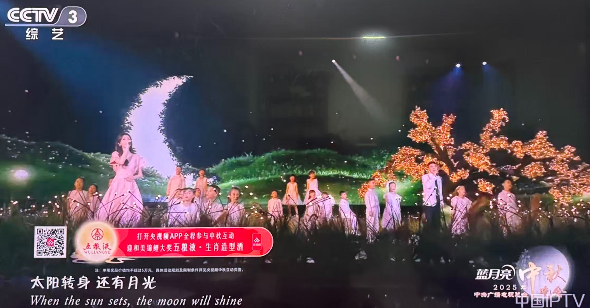 据悉,这是继在全国第七届、第八届中小学生艺术展演活动中斩获声乐类一等奖后,这支优秀的合唱团又登上了更高的舞台——应央视中秋晚会节目组邀请,与著名演员唐嫣、欧豪同台演绎了温情歌曲《不要慌,太阳转身有月光》。