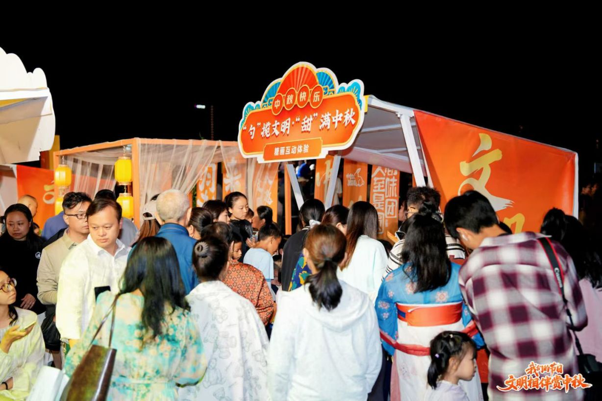 这场兼具文化味与文明风的中秋活动,不仅为双节增添了浓厚的节日氛围,更让中华优秀传统文化在互动体验中得以传承,让文明新风在团圆之夜温暖传递。除秦皇湖畔的活动外,不远处的天府之檐大屏还亮着节日祝福,更有丰富的市集配套,为市民提供传统节日氛围与现代消费场景深度融合的“一站式体验”。“以前过中秋就是吃月饼,这次活动让我感受到了不一样的中秋氛围。”市民赵女士说,希望以后能多举办这样的活动,让节日氛围更浓。