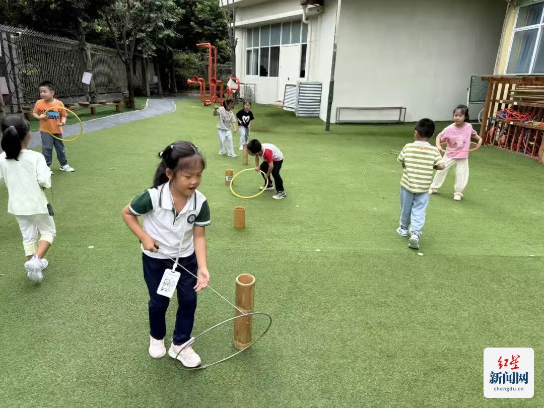 红星新闻网10月11日讯 “慢点推!眼睛盯住它!”阳光下,一个扎着羊角辫的小女孩屏住呼吸,手中的铁钩稳稳引导着铁环向前滚动。这不是某个怀旧电影场景,而是成都市双流区实验幼儿园操场上正在上演的“滚铁环新编”。曾经风靡几代人的传统游戏,如今在萌娃手中焕发出全新活力。