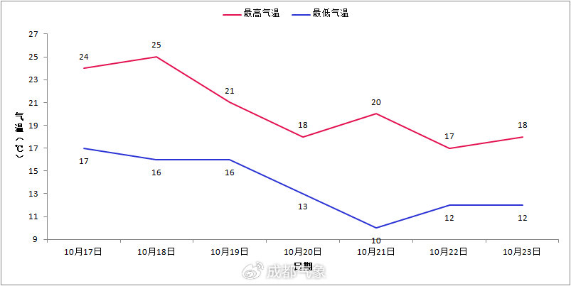 红星新闻网10月17日讯 10月16日,成都市气象台消息,预计未来七天,成都将维持阴雨天气,以小雨天气为主,少数地方可能达到中雨,另外还会有一次影响时间长的大幅度降温。