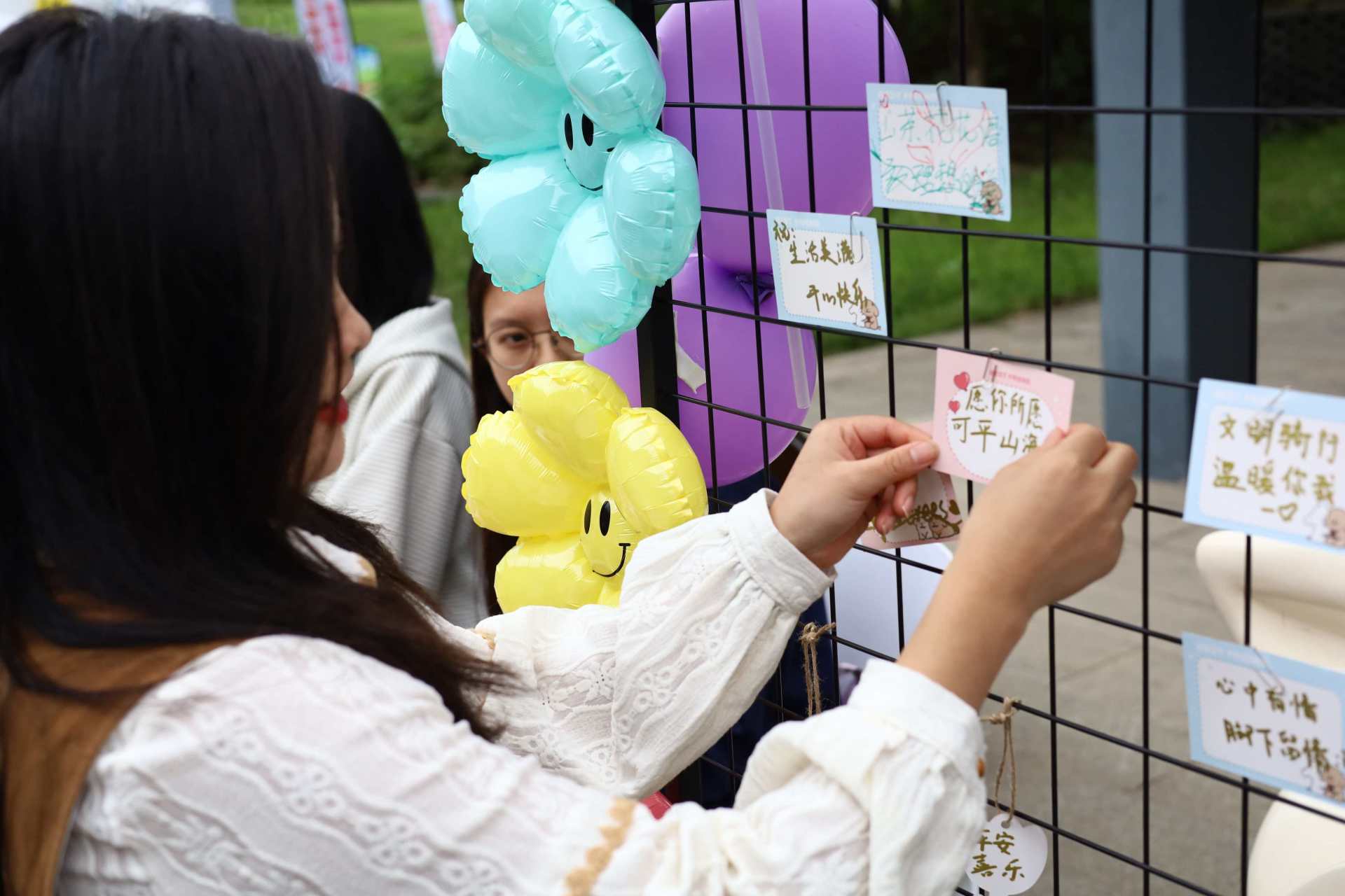活动现场,文明实践志愿者们领取《文明骑行守护者手册》,通过完成三项趣味任务,实现从“观赏者”到“守护者”的角色转变。在“蓉城护景岗”,大家手持“我美景美,文明更美”等温馨标语牌巡逻,并推荐错位拍摄点位,引导市民文明赏花、文明拍照 ;在“花事心愿架”,大家认真写下“言行有礼,文明随行”“轻声漫步,爱惜美景”等对绿道的守护建议;在“美景打卡记”区域,大家纷纷用镜头定格绿道美景,配文分享至社交平台,传递文明骑行、文明赏景理念。带着家人前来游玩的王先生展示着刚兑换的植物种子包说:“这包种子我要和孩子一起种下,让这份守护的心意生根发芽。”