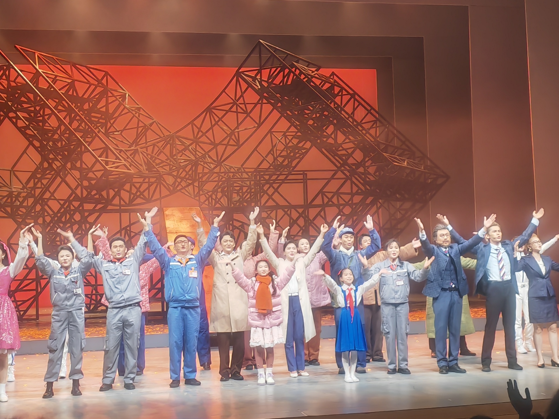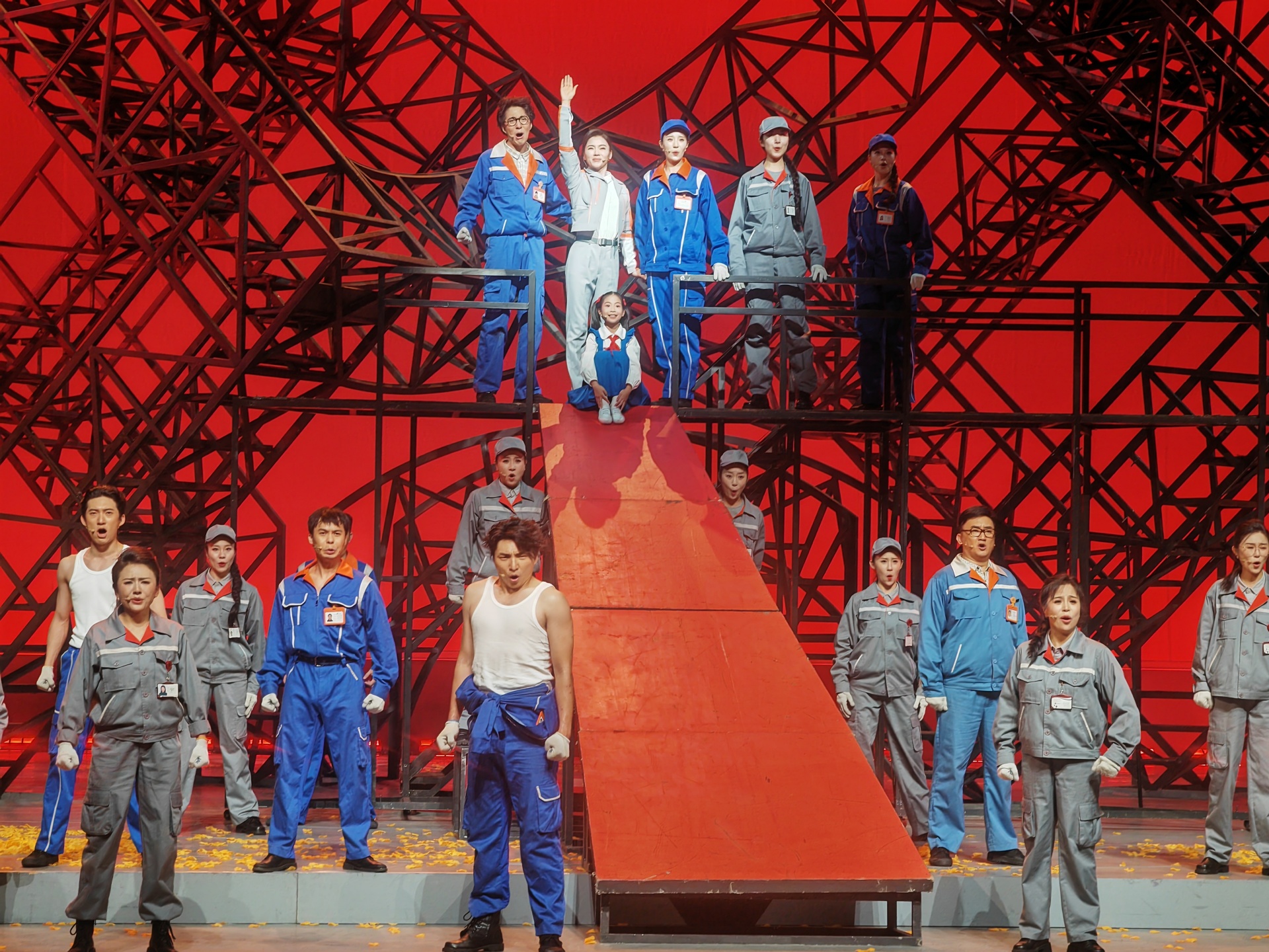 音乐是《逐梦》实现情绪共振最有力的武器。创作上,作曲家没有局限于传统的民歌或红歌风格,而是打破传统边界,大胆融入了流行摇滚、电子音乐甚至轻歌剧的元素,陈思思演绎的主题曲《今时今日》,更是成为全剧精神的高度凝练。特别是一首儿歌贯穿全剧,让观众始终感受慢铁—普铁—高铁“呜呜”声。在表现技术攻坚的唱段中,电子节拍与工业噪音(如机床声、代码敲击声的采样)巧妙融合,营造出极具未来感和紧张感的音场,精准模拟了数字化车间的脉搏。而在描绘工人思乡、恋爱的抒情时刻,旋律又回归到流畅动人的流行曲风,亲切而自然。歌词写作摒弃了空泛的豪言壮语,采用了大量生活化、日记式的内心独白。例如,一句“我拧紧的每一颗螺丝,是否也能拧紧我在这城市的未来”,以精妙的比喻,将机械劳动与个人命运紧密相连,瞬间击中了无数漂泊奋斗者的心。这种“小切口,大情怀”的作词方式,是《逐梦》在艺术表达上的一大突破。