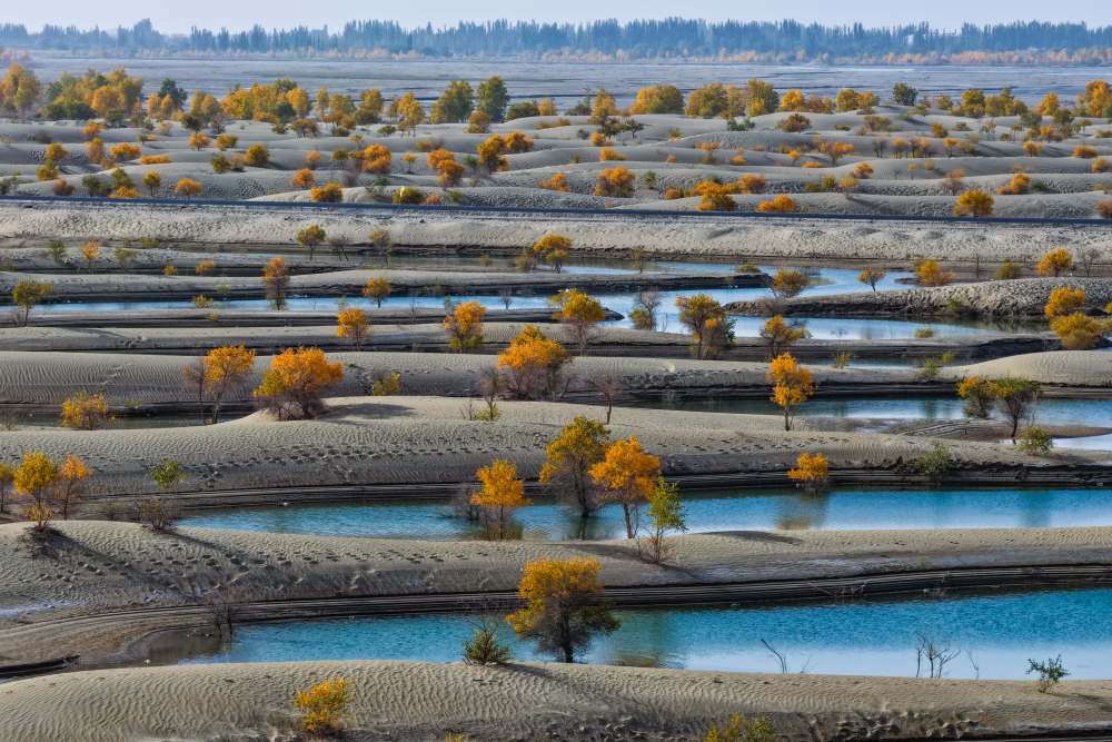 在新疆巴楚县,胡杨林与湿地交织,成为野生动物的天然家园。这片曾经因河水断流枯萎的“风倒木”林区,经过当地不断加大生态保护力度,大片胡杨重新抽枝展叶,生机盎然。