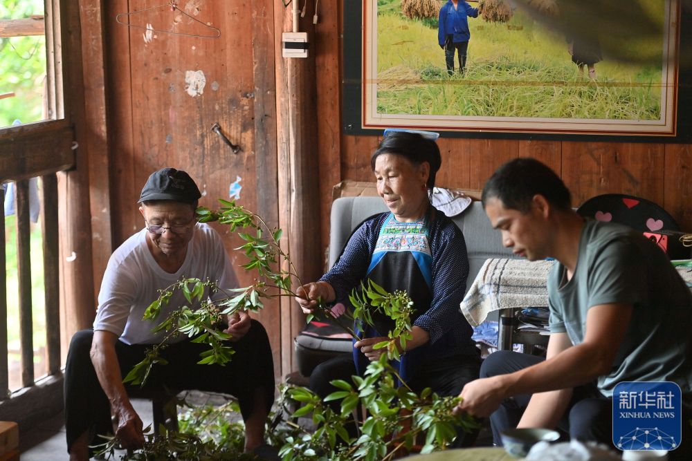 ▲在广西柳州市融水苗族自治县杆洞乡乌英苗寨,村民在整理采收的山苍子,准备送到帮扶企业,用于制作酸笋金汤(7月16日摄)。