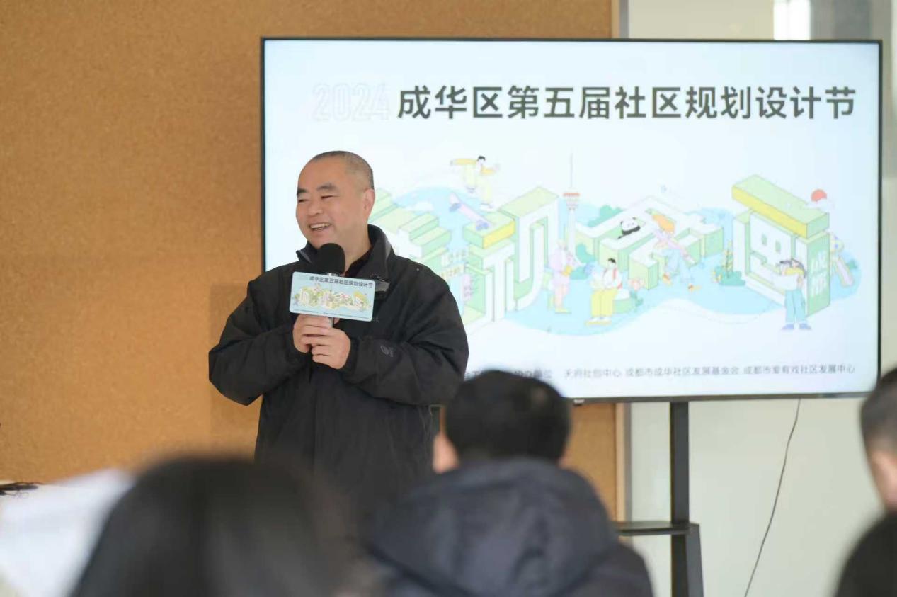 ▲胡宗敏给群众讲解“七彩社区”理念。受访者供图