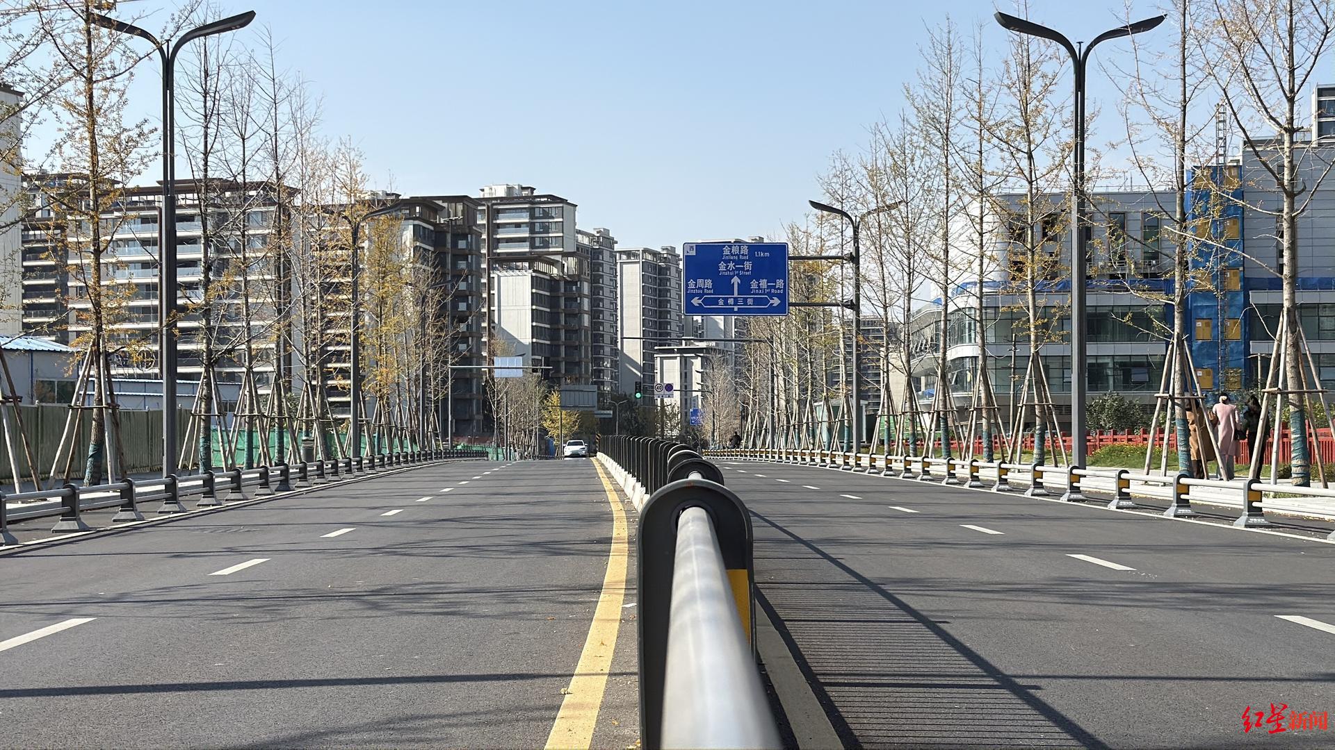 据金牛区住建交局城市建设科副负责人赵星云介绍,该道路的贯通不仅显著缓解了金禧片区的通行压力,也结束了片区2000余户居民前往金周路站乘坐地铁需绕行蜀西路或金禧一路的历史,减少了约1公里的绕行距离,提升了整体通行效率。