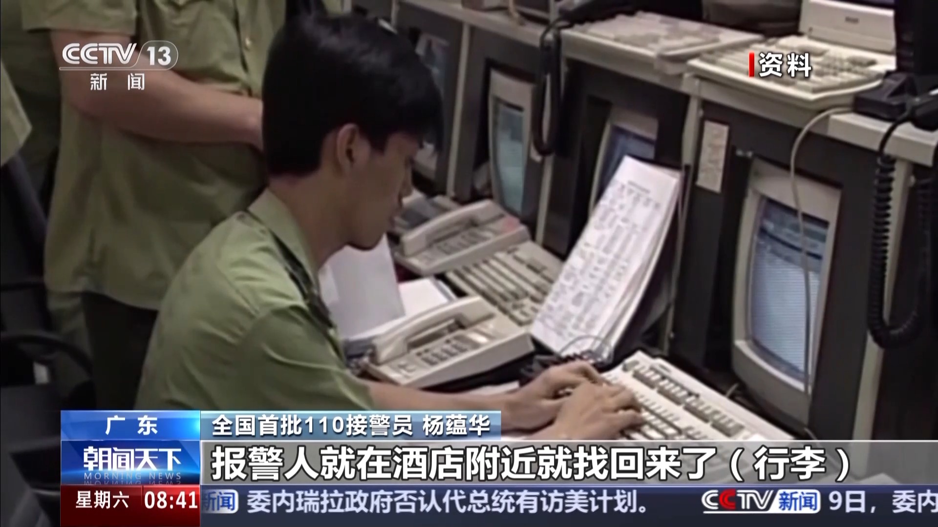 全国首批110接警员 杨蕴华:第一宗报警电话在海珠广场,景园酒店,凌晨时分有个报警人的行李丢了,民警马上通知当地派出所,犯罪嫌疑人听到有人报警,知道警察过来了,慌乱之中就把他的行李丢下,然后自己就跑了,报警人就在酒店附近找回来了行李。