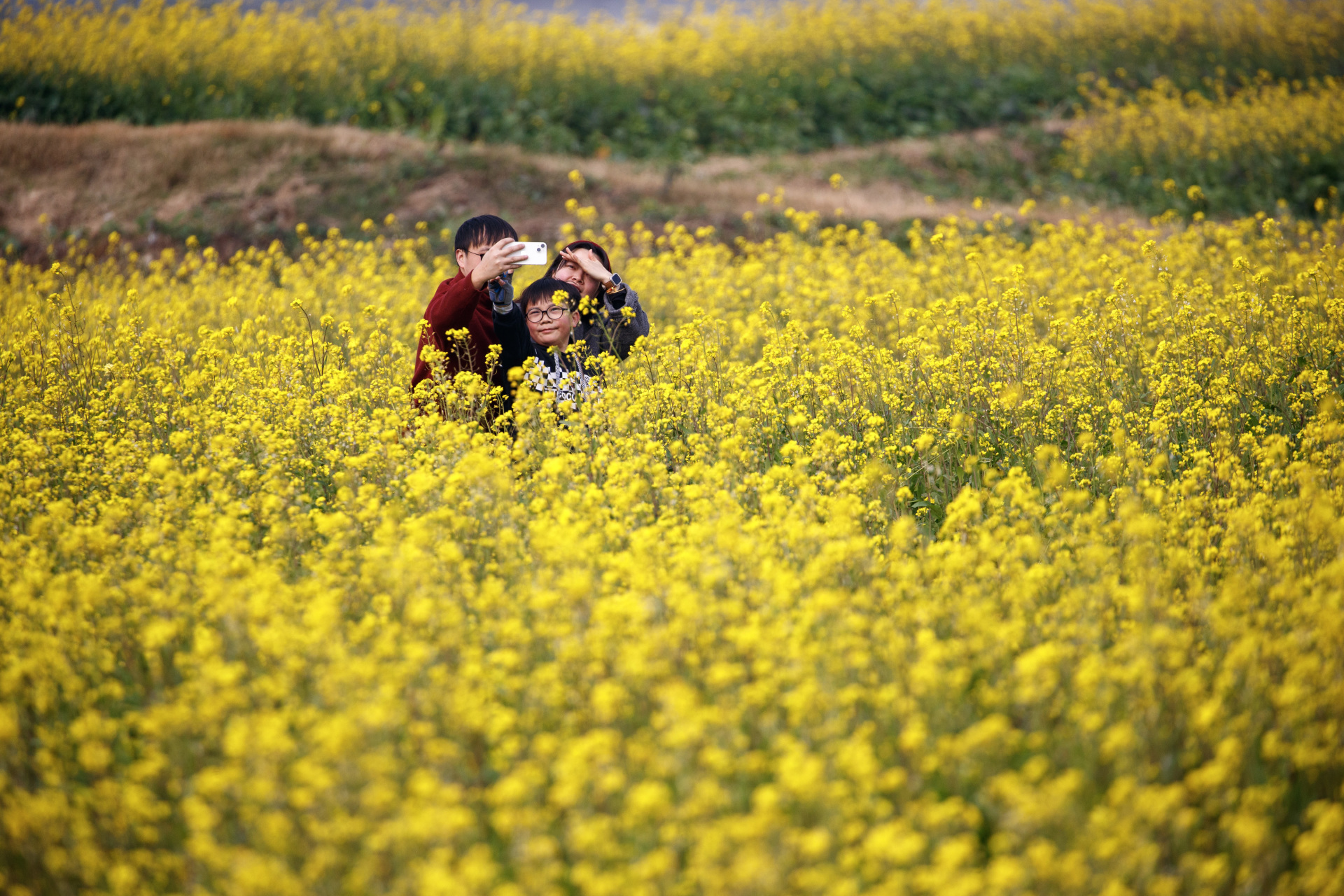 “往年要等到二三月份才能看到油菜花,今年元旦刚过就开得这么好,太惊喜了!”正在花田边拍照的市民李女士笑着说道。记者在现场看到,绵延的绿道旁,百余亩油菜花田长势喜人,金黄的花穗层层叠叠,在微风中泛起阵阵涟漪,淡淡的花香萦绕其间,让人心旷神怡。不少市民携家带口、约上好友,或漫步花田小径,或驻足绿道边缘,尽情享受这份冬日限定的美好。