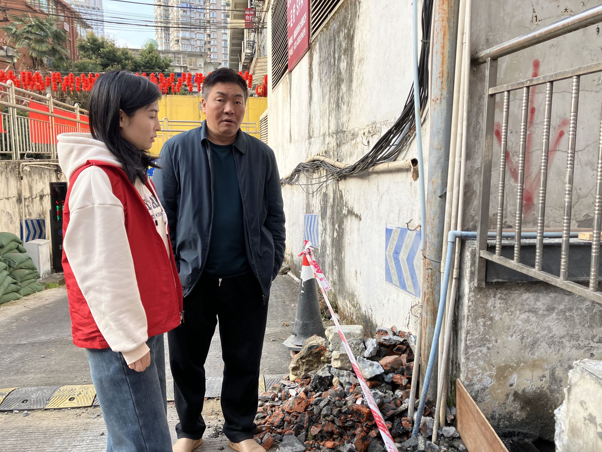▲锦燕监督队现场监督施工(图源:崇德里社区)